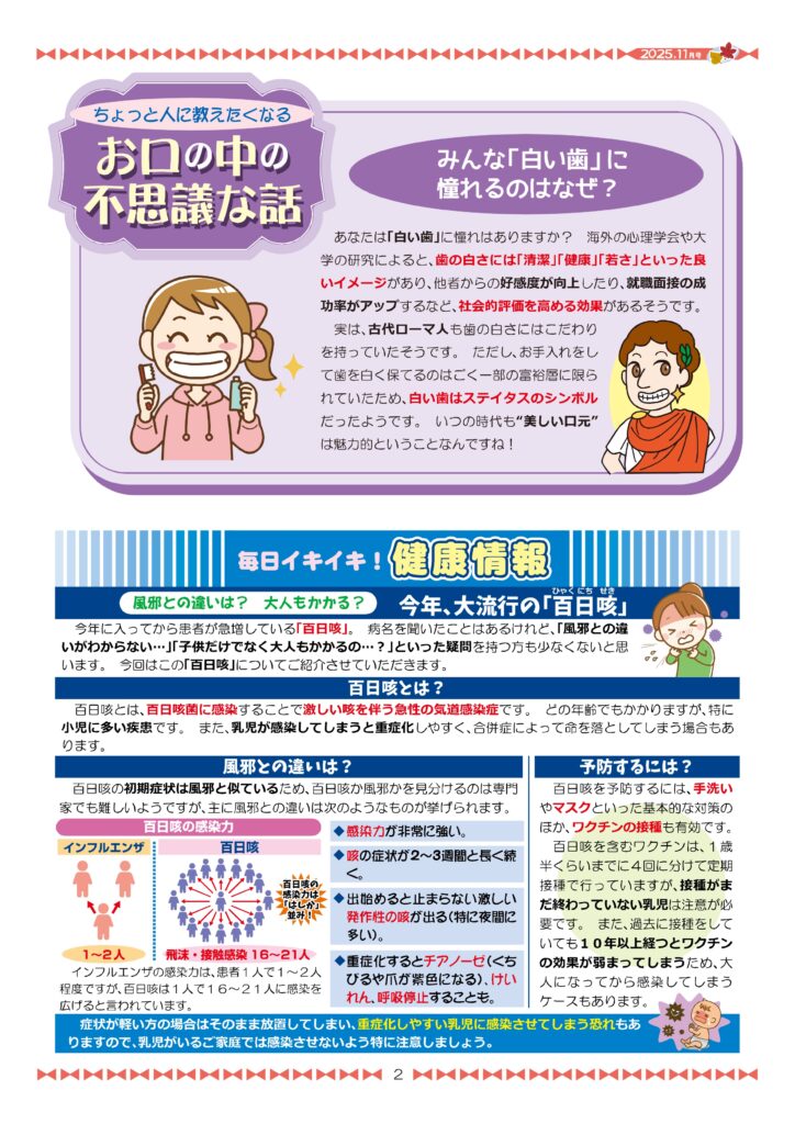 今回は「お口の中の不思議な話」と「健康情報」についてご紹介します。